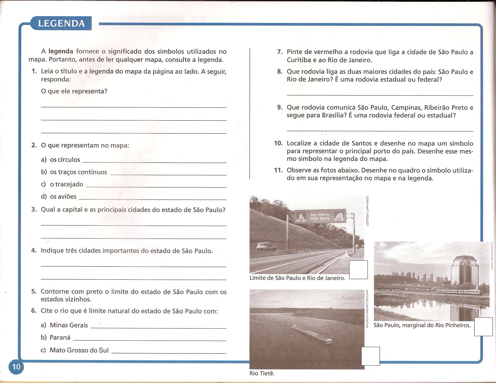 Geografia nos anos iniciais, exercícios.