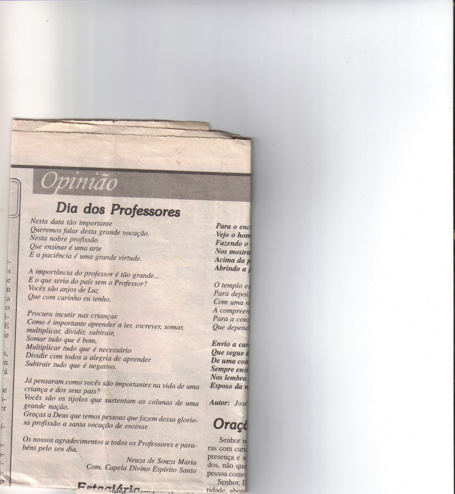 Visitando minha mãe em Osasco recebi um recorte de jornal, e para minha surpresa tinha esta mesagem.